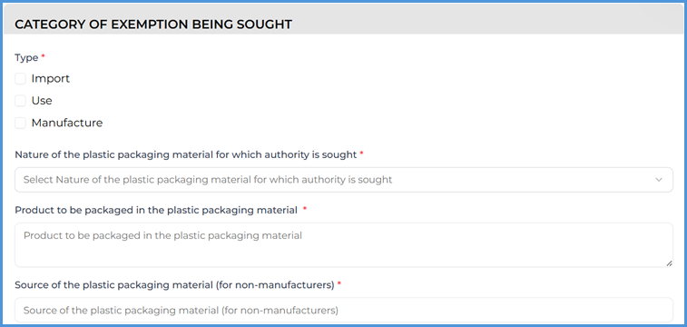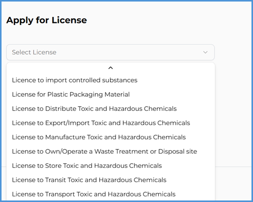Select ‘‘License for Plastic Packaging Material’’ as the type of license you’re applying for